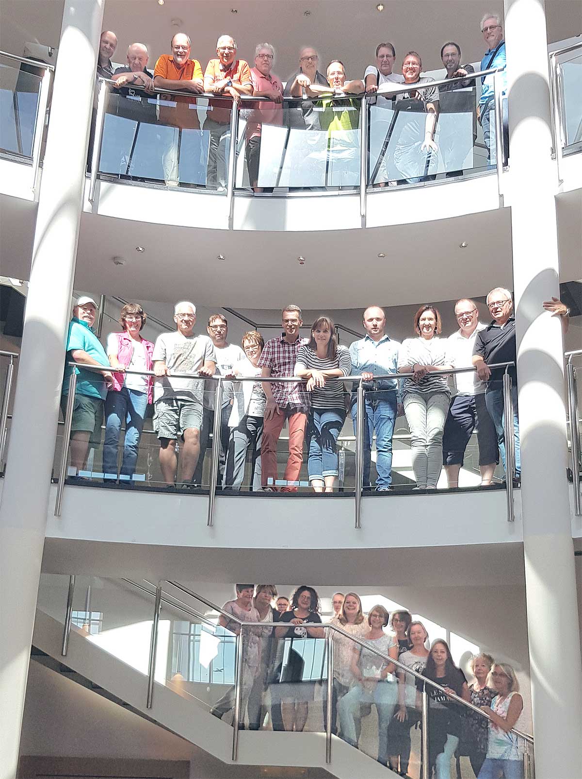 Die Halle des Welcome Hotels in Wesel lädt zu einem solchen Motiv ein. Im Bild: fast alle Teilnehmer der diesjährigen Ausfahrt des Capri Club Deutschland.