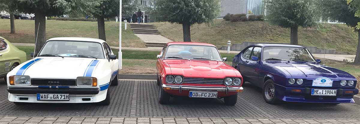 Die Hotelanlage war ursprünglich, wie wir erfuhren, als Seniorenresidenz geplant, dadurch sind die Hotelzimmer überdurchschnittlich groß und perfekt ausgestattet. Also genau das Richtige für uns „Capri- Senioren“. Der Wettergott hatte dankenswerterweise seine große Klimaanlage eingeschaltet und ließ uns nicht - wie im Sommer 2018 üblich - schmoren. Dank der uns vorher von Ralf zur Verfügung gestellten Informationen über möglichst staufreie Anfahrtsstrecken kamen wir entspannt an unser Ziel, mit Ausnahme von Lutz Bönisch, dessen Capri ein wenig „kränkelte“. Walter Dahmen, alias „Capri-Gott“, kam ihm zu Hilfe und machte das Unmögliche möglich. Lutz konnte am Samstag starten, denn Walter hatte sein fahrbares Ersatzteillager wie immer dabei.