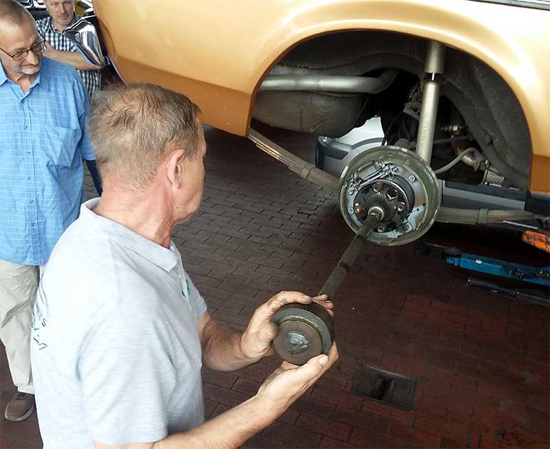 Über den Tag verteilt gut zwei Dutzend Capri und insgesamt rund 50 Interessierte fanden sich am 27. August bei bestem, weil nicht zu heißem, Wetter in der Stadt am Rhein ein. Diesjähriges Thema: Austausch der Radlager vorn und hinten mit Einstellung.