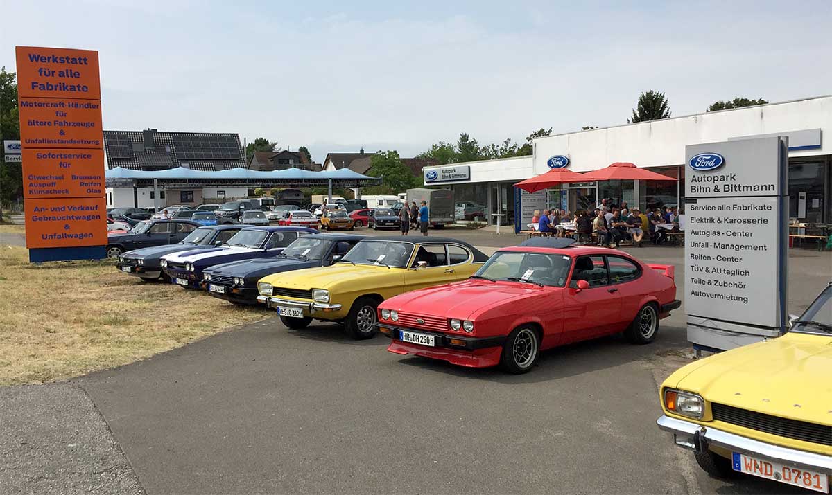 Coronabedingt verschob sich bekanntlich die Ausfahrt 2020 auf 2021. Dies hatte eine Verlagerung des Workshops in das Jahr 2022 zur Folge. Geblieben ist im Vergleich zu vielen vorangegangenen Veranstaltungen der Ort des Geschehens. Der Autopark Bihn & Bittmann stellte uns erneut seine Räumlichkeiten in Ingelheim zur Verfügung. Geschäftsführer Frank Bittmann, selbst Besitzer eines rassigen Capri RS, schließt dem CCD seit Jahren gern Werkstatt und Verkaufsraum auf.