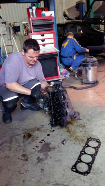 Also „rupften“ wir in harter Arbeit den Zylinderkopf vom Motor runter, fingen an den Neuen schön vorzubereiten und alle brauchbaren Teile ordentlich zu reinigen. Eine schweißtreibende Arbeit, vor allem unter Zeitdruck. Gut wenn man sich dann auf die Freunde im Club verlassen kann und einem mit Rat und Tat geholfen wird.
