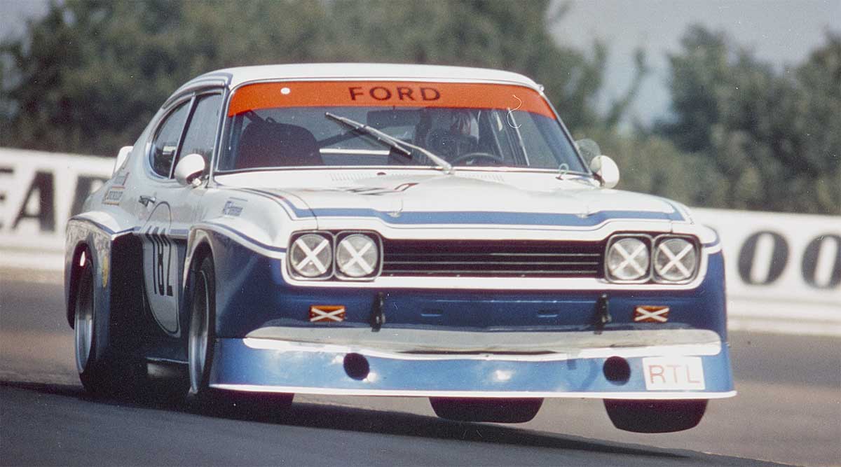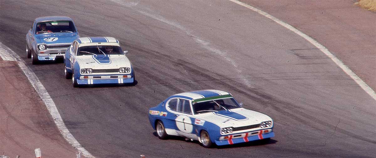 Historische Aufnahme vom letzten Werkseinsatz eines Capri RS. 1000-Kilometer-Rennen im südafrikanischen Kyalami, am Steuer Mass/Ludwig.