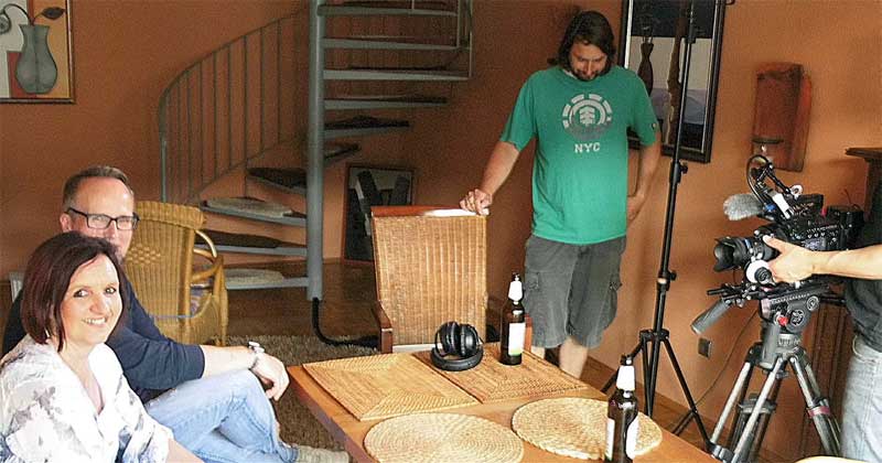 Die Bekleidung aus den 1970er Jahren hatten wir im Gepäck, für die älteren und späteren Sachen wurden wir vorab von der Kostümbildnerei akribisch vermessen. Insgesamt sechs Drehtage haben wir gemeinsam erlebt. Los ging es am letzten Mai-Wochenende mit einem Heimatbesuch zur Vorstellungsrunde. Das Team suchte mich zunächst an meinem Arbeitsplatz in der Redaktion auf. Später wurde in unserer Autohalle und zu Hause gedreht. Anfang Juni zogen wir dann für drei Tage in eine WG in Troisdorf bei Bonn.