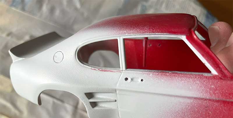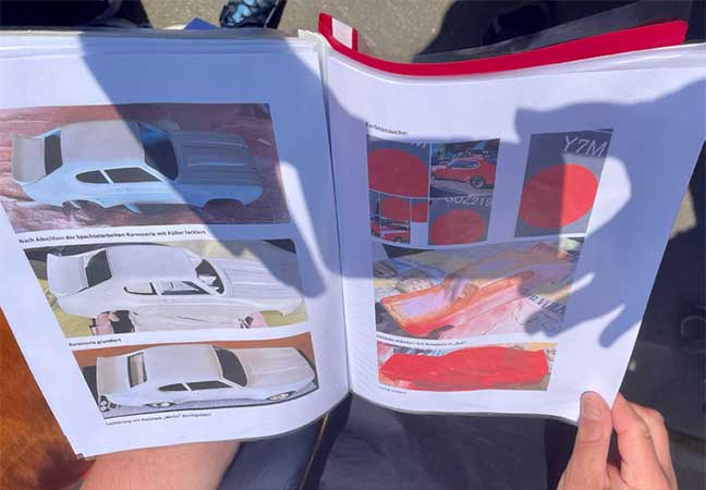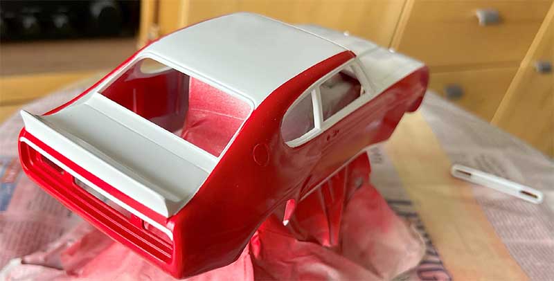 Der Nachbau begann mit einigen Schwierigkeiten. Besondere Eigenheiten wie Schlitze in den hinteren Kotflügeln sowie Anbau eines Heckspoilers, die nötigen Decals und Lackierung sind bei diesem Auto sehr speziell. Längere Zeit wurde für die Recherche der originalen Farbtöne benötigt. Wir konnten ihn schließlich nicht direkt fragen, sonst wäre aus der geplanten Überraschung nichts geworden. Wir sind dann aber doch zu einer Lösung gekommen…