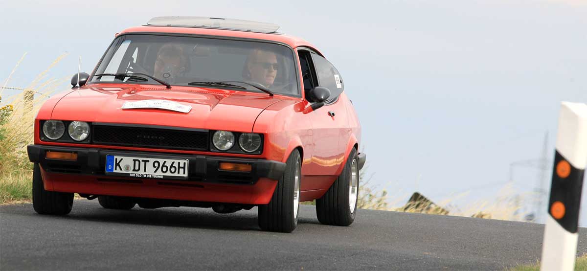 Tatsächlich wollte ich erst seit den 80er Jahren selber einen Capri besitzen. Seinerzeit brauste Gerd Knözinger mit seinen Makos immer unsere Straße in Rösrath runter. Er wohnte etwa 500 Meter von uns entfernt. Ihm habe ich immer begeistert hinterhergeguckt und bin oft an seiner Garage vorbeigeradelt. Da gab es dann immer heiße Makos zu gucken.