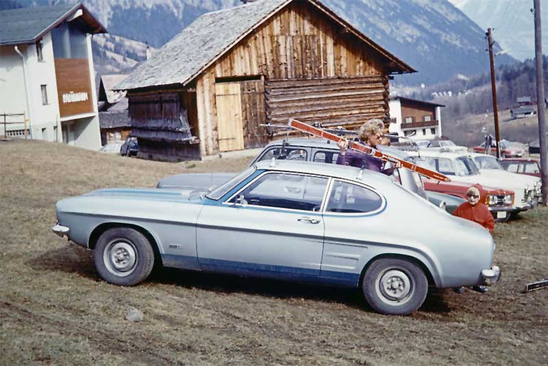1972 wurde der Capri im coolen RS-Look blau abgesetzt. Sah doch gut aus, oder? Bis Ende der 70er Jahre sind wir oft zu den Tourenwagenrennen am Nürburgring gefahren. Heute noch bekomme ich leichte Gänsehaut, wenn ich an die wilden Jagden von Stuck, Fittipaldi/Stewart, Mass, Glemser und anderen auf den traumhaft schönen Capri denke! Da musste unserer mindestens so ähnlich lackiert werden!