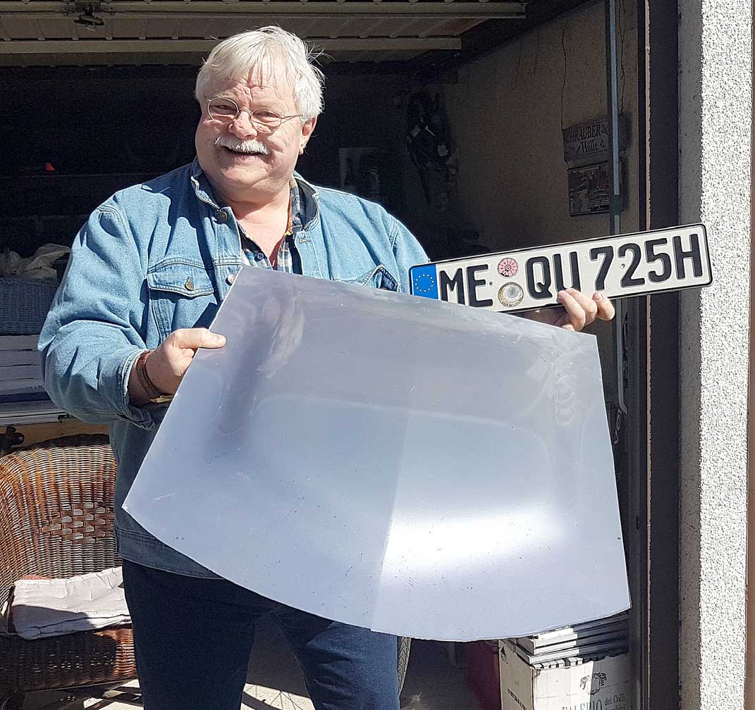 Ich bin restlos begeistert, wie gut die Restaurierung meines schon stillgelegten Capri – zuletzt wirklich ein „Stehrümchen“ – durch Johannes gelungen ist. Fast zwei Jahre gingen ins Land, da immer neue Herausforderungen handwerkliches Geschick notwendig machten. Manch eines unserer langen leidenschaftlichen Telefonate hatte auch eher bittersüße Momente durch Erosion, durch Korrosion und die dann notwendigen Maßnahmen. Johannes kann es, für mich ist er ein begeisterter „Blechflüsterer“, denn es hatten sich mehr Baustellen gezeigt als bekannt oder erwartet. Er hat alles bestens gemeistert und ich hoffe, ihn, seinen Sohn Ole und den Capri schweißt das noch mehr zusammen. Einen besonderen Wunsch erfüllte mir mein Blechflüsterer tatsächlich. Johannes trennte den weitgereisten Powerbuckel aus der nicht mehr rettbaren Motorhaube heraus und brachte ihn – einem historischen Wappenschild ähnlich – sauber herausgetrennt mit. Mich hat es fast umgehauen!