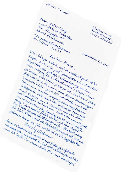 Handschriftlich, mit Tinte auf das Papier gebracht, meldete sich auch Jochen Cremer zu Wort. Auszüge aus seinem Brief.